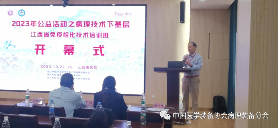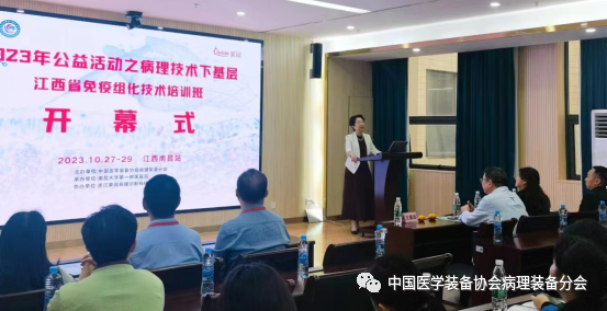 开幕式由中国医学装备协会病理装备分会公益部部长王德田教授主持,南昌大学第一附属医院病理科首席专家梅金红教授、中国医学装备协会病理装备分会秘书长王艳萍出席活动并在开幕式上致辞。