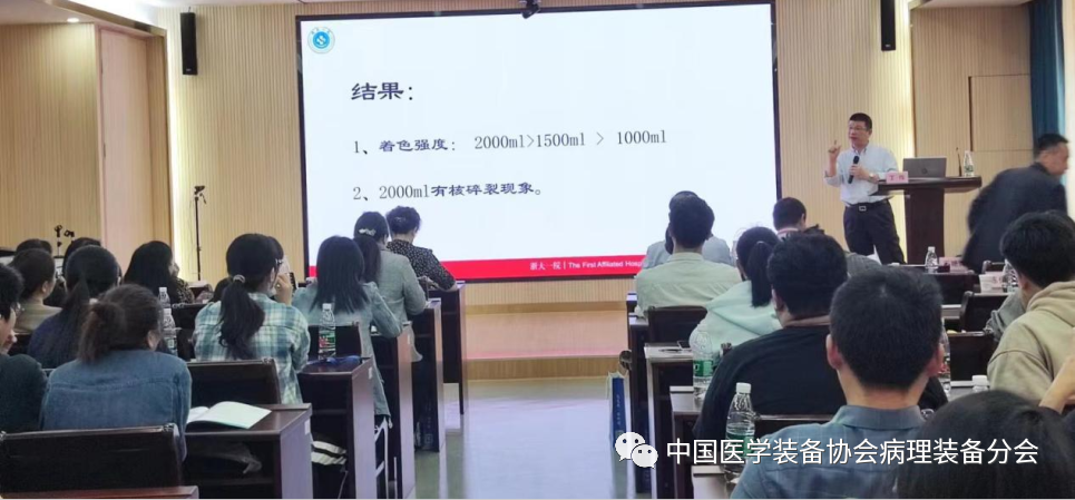29日,会务组精心安排了理论授课,由南昌大学第一附属医院病理科副主任技师陈任生老师和北京协和医院病理科主管技师周良锐主持。