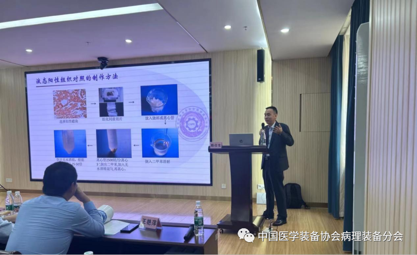 南昌大学第一附属医院病理科副主任技师陈任生老师受邀进行了《全自动免疫组化仪检测中部分失控片原因分析》的学术专题分享,从仪器操作中出现的失控问题入手,给学员分享如何解决实际免疫组化失控问题。