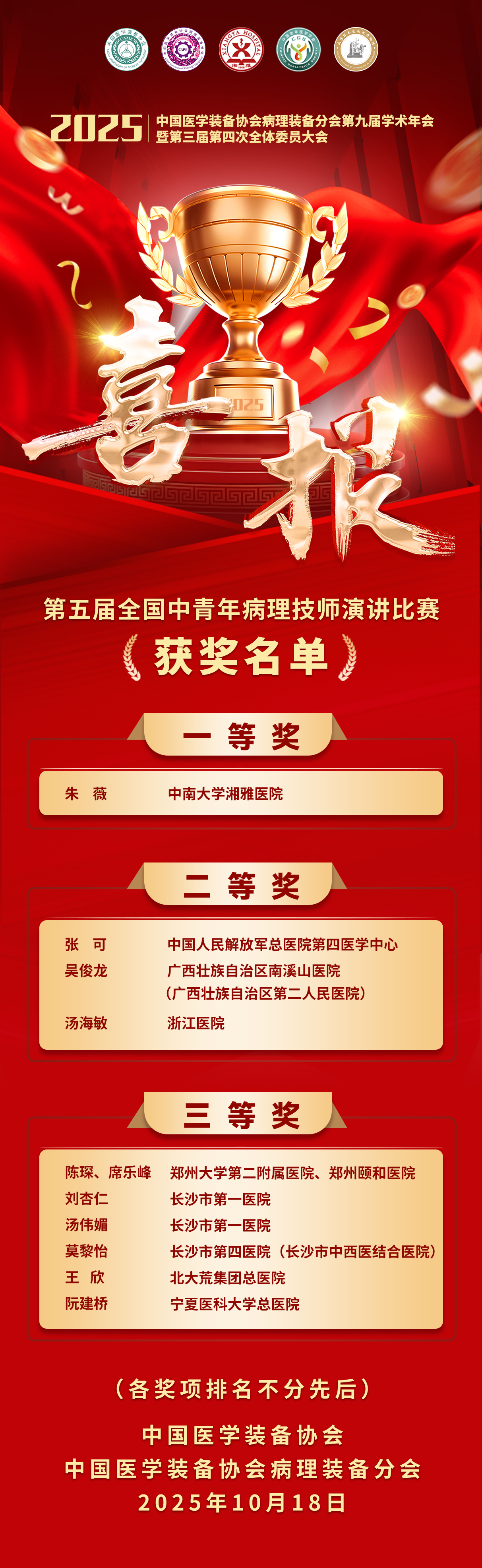 年会喜报四 | 第五届全国中青年病理技师演讲比赛获奖名单